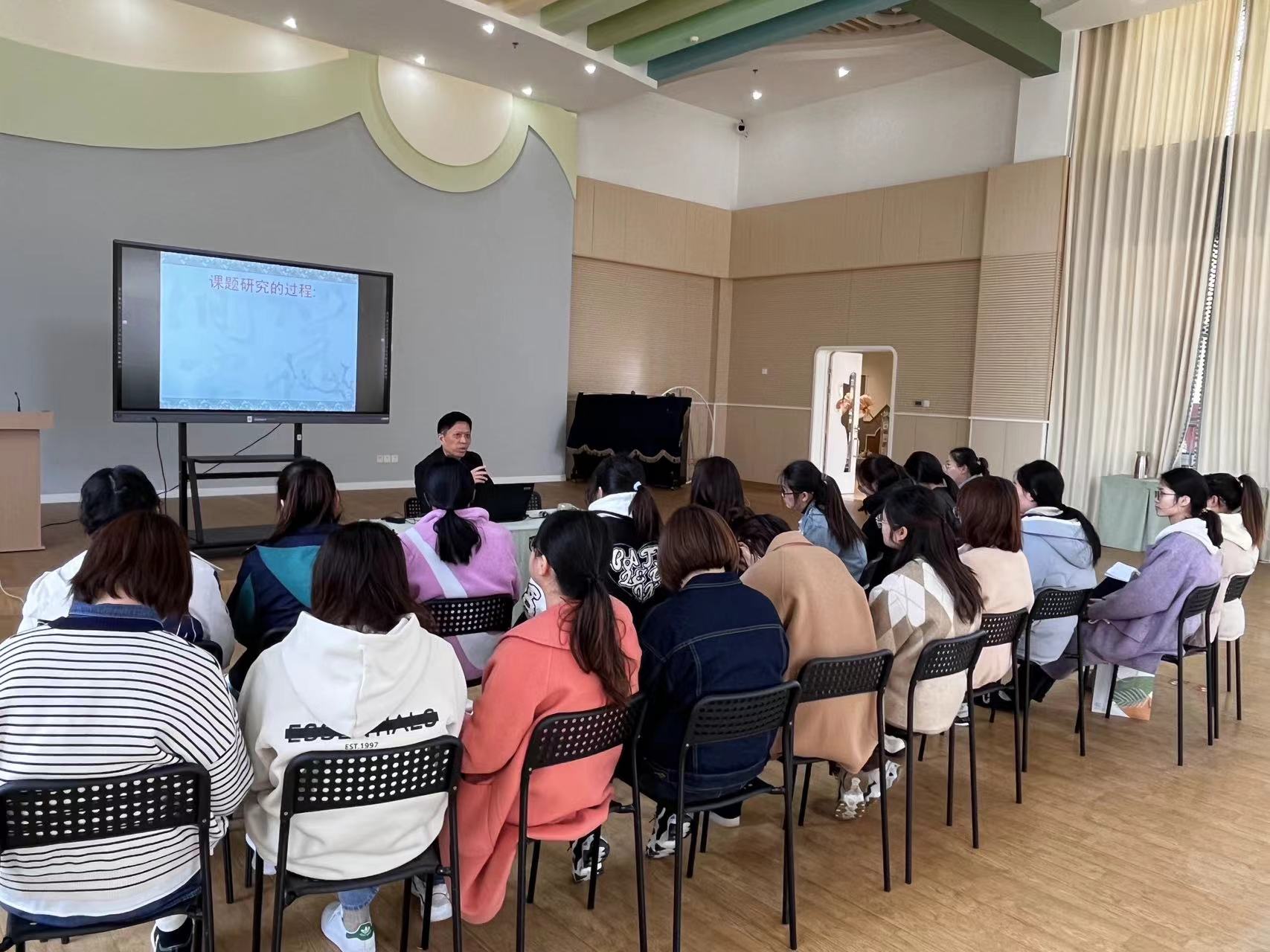 课题研究不仅对提升园所保教质量起到至关重要的促进作用,还能够提升教师专业能力水平;既是促进教师自主学习的有效途径,又是教师专业能力提升的一种研修方式。为进一步提升教师课题研究能力,从实际需求出发为教师们提供帮助,2023年3月27日中午,我园非常荣幸地邀请了教科室汪圣龙主任来我园开展个人课题撰写的交流研讨活动。